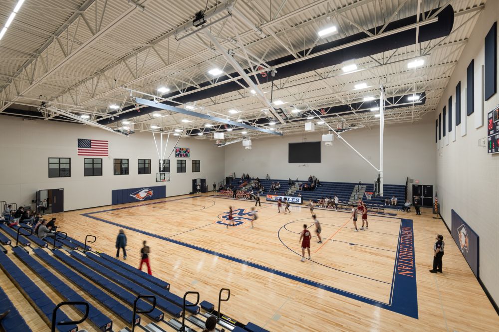 Bridging the gap between Nashville Christian School’s high school and its elementary and middle school buildings, the gymnasium addition integrates the new facility into the campus, ensuring both functionality and accessibility for students, staff, and visitors. Key features of the 33,500 sq. ft. addition and renovation include a 1,500-seat gymnasium with expandable bleachers, two locker rooms, multiple restroom facilities, courtyard space, concession areas, and more. The building’s new gathering areas are thoughtfully designed to foster student interaction and support collaborative learning.