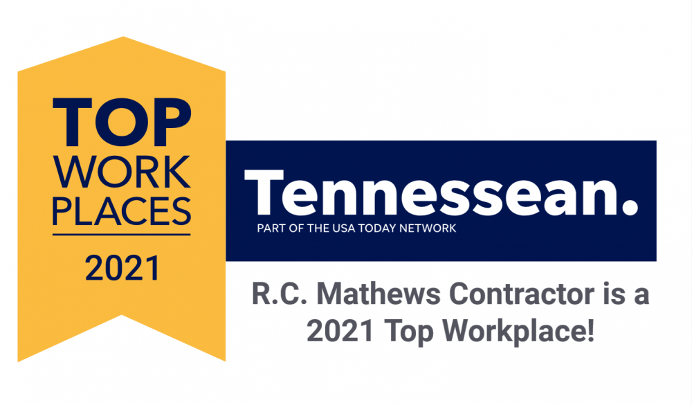 R.C. Mathews is proud to be named a 2021 Top Workplace of Middle Tennessee! Through anonymous surveys of all RCMC employees measuring a variety of engagement and culture topics, the company has been ranked #15 for Small Businesses. The foundation of RCMC’s eight decades of success has always been treating others how you want to be treated.