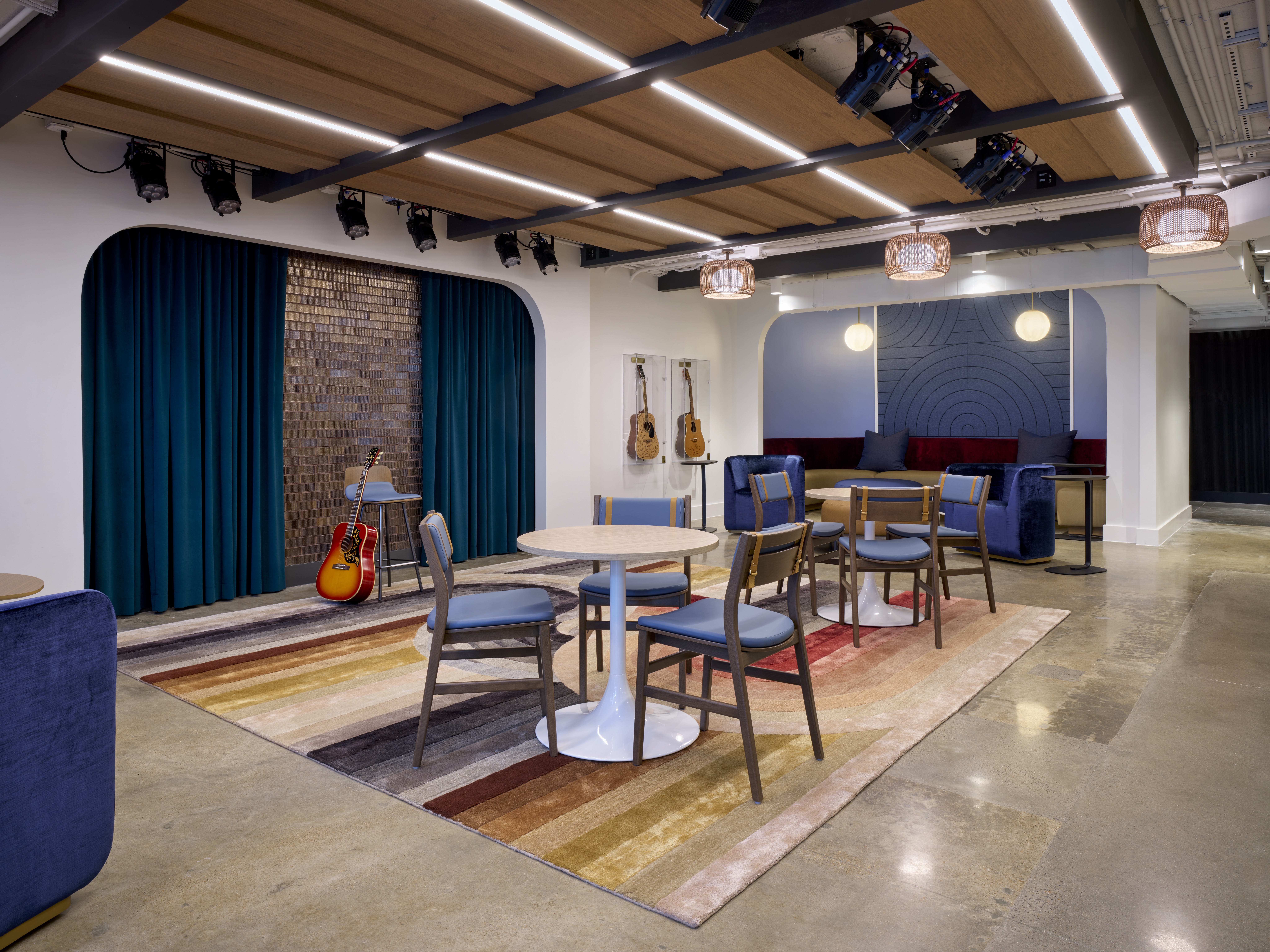 R.C. Mathews Contractor renovated and built out 38 Music Square East, transforming the former Buddy Lee Attraction building into a 17,654-square-foot academic and creative hub for Belmont University’s Curb College of Entertainment and Music Business in the heart of Music Row. The project converted an existing facility into a modern environment with new offices, specialized music rooms, conference areas, and collaboration spaces that support hands-on learning and industry engagement. Work included comprehensive electrical and mechanical upgrades, major structural repairs and upgrades to address unforeseen conditions, and highly technical interior buildouts, including an elevator lobby, lounge/ kitchenette, listening lounge, songwriting studio, sound-isolated practicum suites, an AET classroom, songwriter’s stage, updated restrooms, and student support spaces. Located just inches between an existing office building and active recording studios, the project required careful planning, noise and vibration control, and close communication with neighboring tenants to minimize disruption. R.C. Mathews coordinated closely with the design team and owner to sequence construction around ongoing campus and business operations, maintain safety and access, and deliver a high-performance, flexible space that honors the site’s historic music legacy while meeting contemporary academic and creative needs.