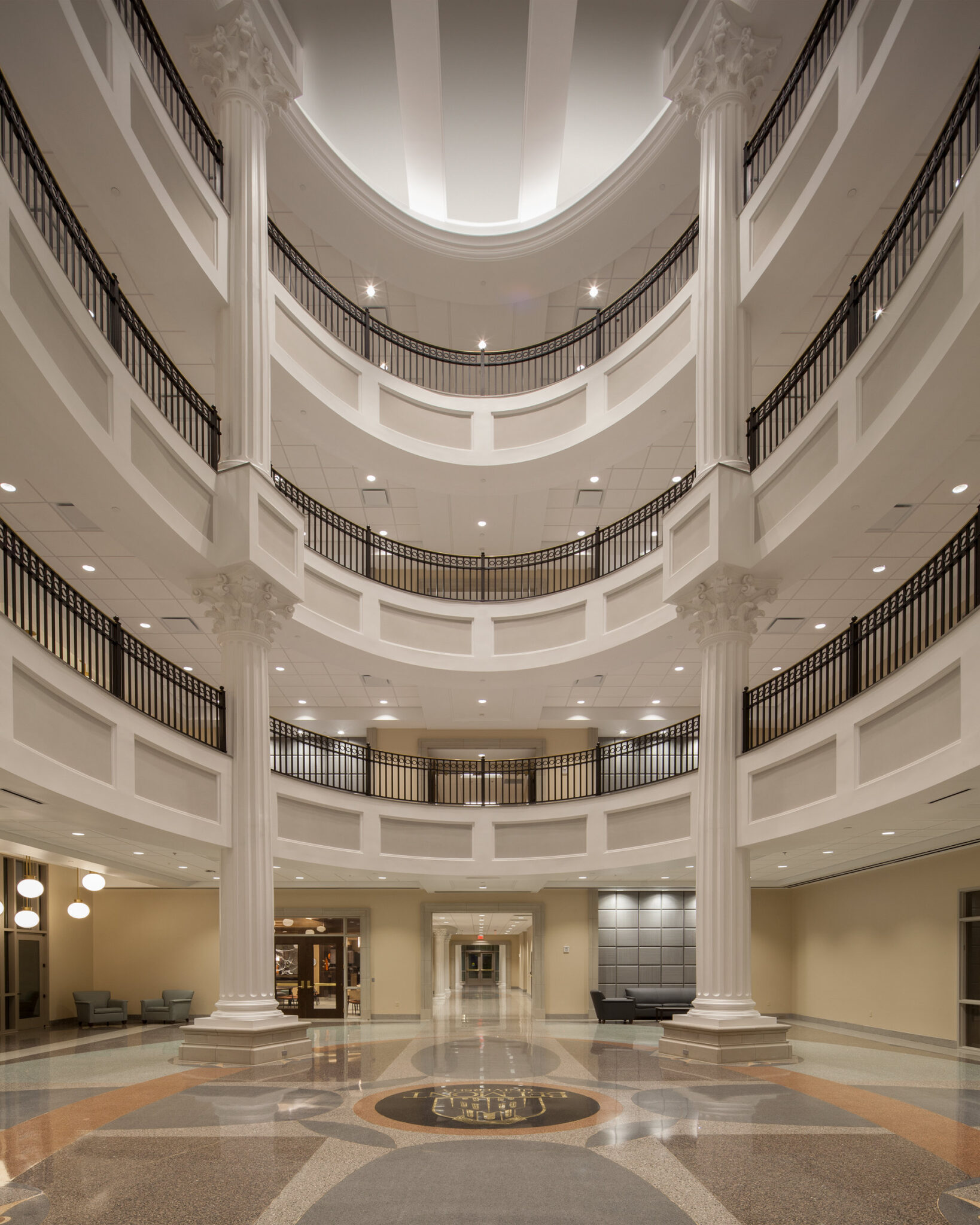 With its Grand Opening in Summer 2014, the Janet Ayers Academic Center has become a focal point of the Belmont campus on the corner of Wedgewood and 15th Avenues. The 186,140-square-foot center includes a 300-seat chapel, dining options, 30 classrooms, state-of-the-art science and research laboratories, faculty offices and conference space. A five-level below-grade parking garage provides 437 spaces, and a three-level footbridge corridor was constructed to connect to the existing Gordon E. Inman Center and McWhorter Hall.
