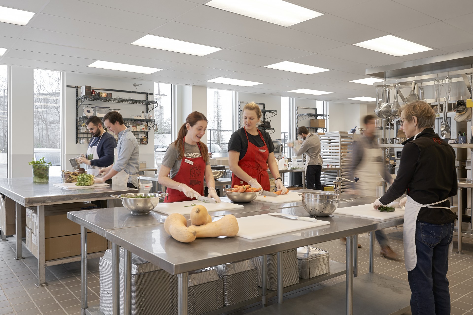 The Nashville Food Project, a non-profit focused on cultivating community and alleviating hunger in the city, had outgrown its space. Gresham Smith and R.C. Mathews Contractor were chosen to create a solution that would allow the organization to serve an even wider base that ever before. Having operated out of a residential-sized kitchen at Woodmont Christian Church since 2009, the Nashville Food Project envisioned a large commercial kitchen in which their over 100 weekly volunteers could whip up meals for organizations and people across the city. Also included in the new facility is a large community dining space, shared offices and a board room, and large dry storage, walk-in cooler and freezer for food storage and prep. Overall, the new facility brings to life their message of bringing people together to grow, cook and share nourishing food, with the goals of cultivating community and alleviating hunger in our city.