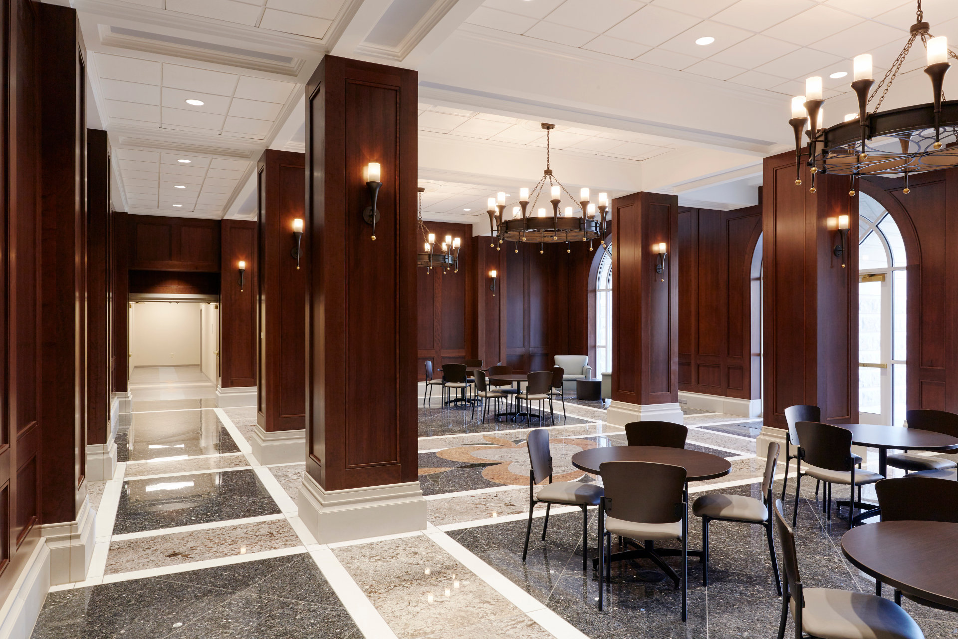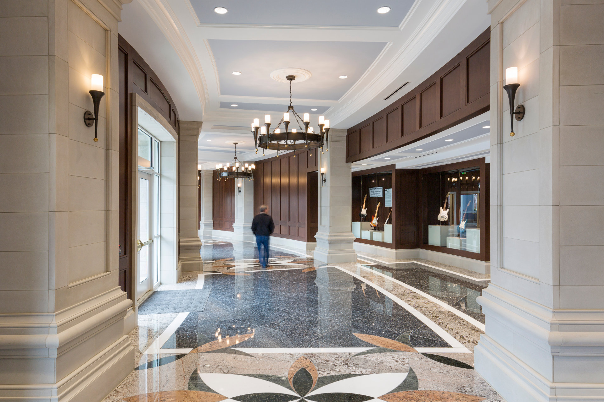 This new facility serves as the new home to Belmont University’s largest college: The Curb College of Music Business & Entertainment. Curb College includes a new motion pictures program, which requires several highly specialized and sound sensitive spaces; a 260-seat screening theater and sound mixing stage; a recording studio; sound and insert stages for television and movie production; and multiple computer labs for post-production editing. The complex also includes a 1,000-seat dining facility that triples the existing dining hall space.